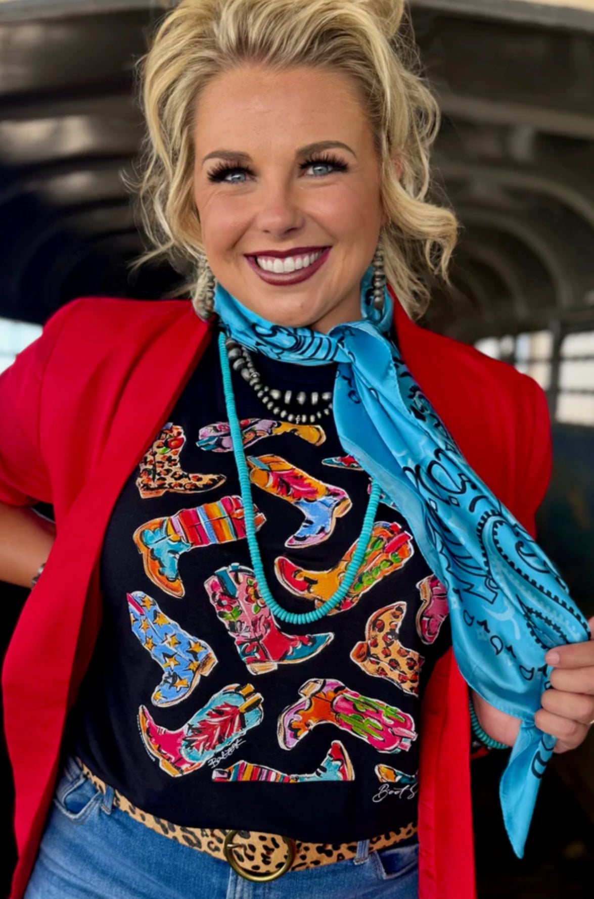 It's boot scootin' boogie time, and these fun, decorated boots make this tee a new favorite!!